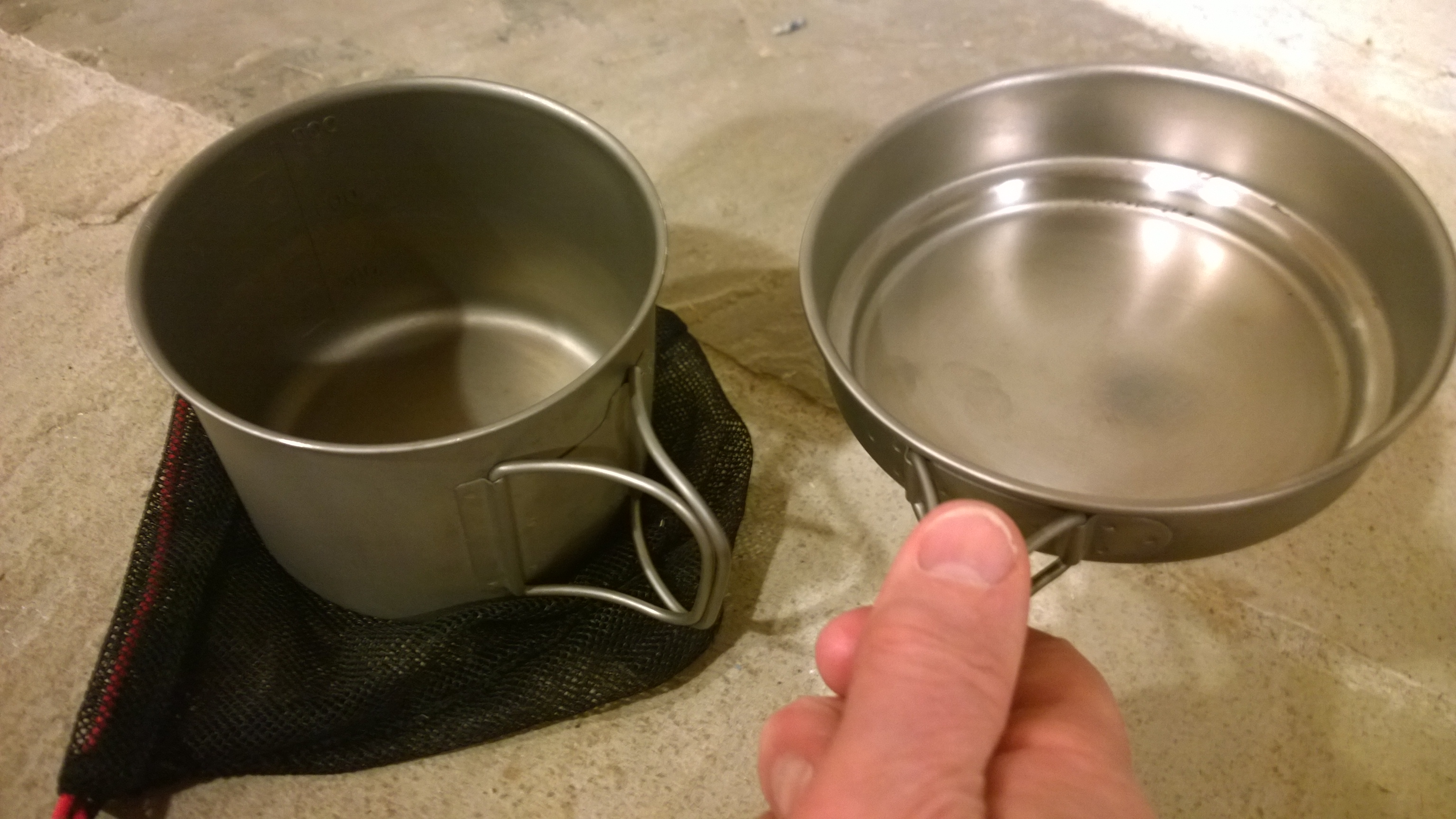 Vargo Outdoors Titaium Ti-Boiler : 900ml mug, 400ml pan & mesh stow bag (c)2016 David Marshall